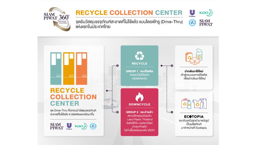 ปัญหาสิ่งแวดล้อมส่งผลกระทบระยะยาวต่อชีวิตผู้คนเป็นวงกว้าง จึงเป็นเรื่องเร่งด่วนที่เราทุกคนต้องช่วยกันแก้ไขและรับผิดชอบ เริ่มต้นจากการบริหารจัดการขยะที่เกิดขึ้นในชีวิตประจำวันของทุกคน ดังนั้น เพื่อเป็นต้นแบบในการจัดการขยะแบบครบวงจรตามแนวคิดเศรษฐกิจหมุนเวียน (Circular Economy) และป้องกันไม่ให้มีเศษพลาสติกรั่วไหลสู่สิ่งแวดล้อมตลอดทั้งกระบวนการตั้งแต่ต้นทางจนถึงปลายทาง จึงได้เกิดเป็น Recycle Collection Center หรือ จุดรับวัสดุบรรจุภัณฑ์สะอาดที่ไม่ใช้แล้ว ที่เปิดให้ลูกค้า และประชาชนคนทั่วไปสามารถนำขยะที่ทำความสะอาด และคัดแยกแล้วจากที่บ้าน มาฝากส่งต่อไปรีไซเคิลเป็นวัตถุดิบ และนำมาเข้ากระบวนการอัพไซคลิ่งเพิ่มมูลค่า ณ จุดไดร์ฟทรู Recycle Collection Center ที่ตั้งอยู่ 2 แห่งในสยามพารากอน
