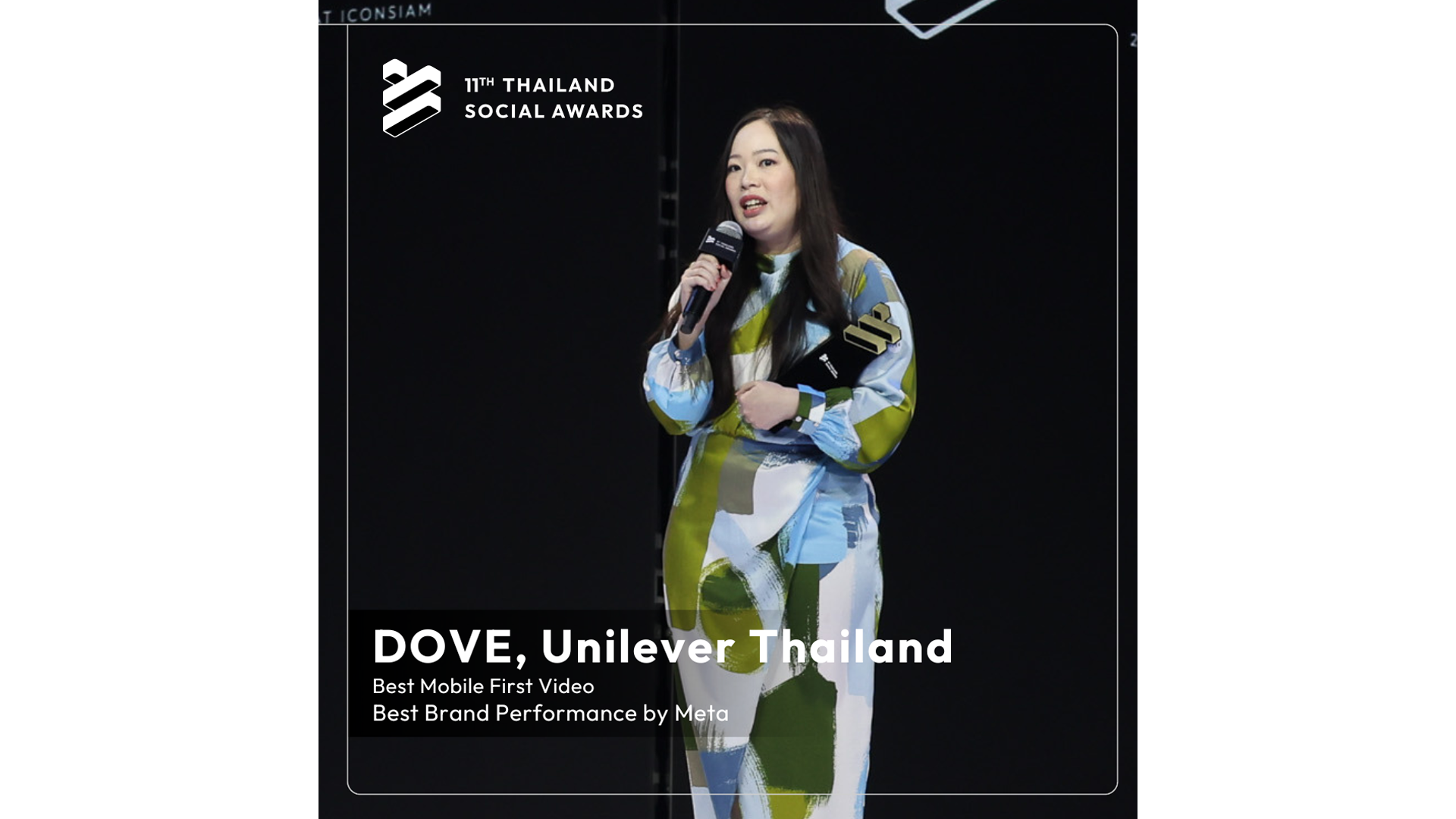 พาณิภัค ศิริรัตนชัยกูล ผู้จัดการอาวุโสฝ่ายการตลาดผลิตภัณฑ์โดฟ กลุ่มบริษัท ยูนิลีเวอร์ ประเทศไทย กล่าวว่า “โดฟรู้สึกภูมิใจเป็นอย่างยิ่งที่ได้รับรางวัลจาก Meta ในกลุ่มรางวัล แบรนด์ที่ทำผลงานวิดีโอยอดเยี่ยมบนมือถือบนช่องทาง Meta ขอบคุณที่ทางไวซ์ไซท์และ Meta เล็งเห็นว่าโดฟมีการใช้โซเชียลมีเดียอย่างยอดเยี่ยม โดยที่ผ่านมาโดฟได้มีการปรับรูปแบบของวีดีโอให้เหมาะสมกับสื่อที่เลือกใช้ จากการใช้เครื่องมือวัดผล Brand Metric โดยไวซ์ไซท์ เผยให้เห็นว่า โดฟได้ใช้ประโยชน์จากข้อมูลเชิงลึกด้าน Growth Placement ของ Meta เพื่อสร้างกลยุทธ์การสื่อสารแบบมัลติมีเดียที่รวมถึงฟีด สตอรี่ โฆษณาในสตรีมและโพลล์ เน้นสร้าง Mobile First Video ทั้ง Reels และสตอรี่ที่สอดคล้องกับข้อมูลเชิงลึกของกลุ่ม Gen-Z และ Millennial ส่งผลให้ความตั้งใจในการดำเนินการเพิ่มขึ้น +3.4 จุด, การรับรู้ถึงแบรนด์เพิ่มขึ้น 2.8 จุด และการจดจำโฆษณาเพิ่มขึ้นสูงถึง 6.5 จุด ซึ่งตอกย้ำว่าโดฟไม่ได้แค่เพียงใช้โซเชียลมีเดียเพื่อให้เกิด Awareness ของสินค้าเท่านั้น แต่ยังต้องการสร้าง Connection และ Engagement เพื่อความเปลี่ยนแปลงในระยะยาวผ่าน Purpose Campaign อย่างเช่น #LetHerGrow และจะมุ่งมั่นสร้างความมั่นใจและความเปลี่ยนแปลงที่แท้จริงต่อไป”